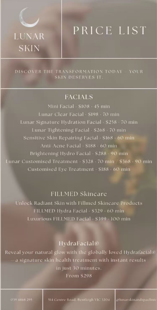 At Lunar Skin and Spa Clinic, we believe in enhancing your natural beauty with sophisticated, non-surgical treatments. Our expert team provides personalized care in a luxurious, minimalist setting. Discover the art of rejuvenation and unlock your skin’s radiant potential.